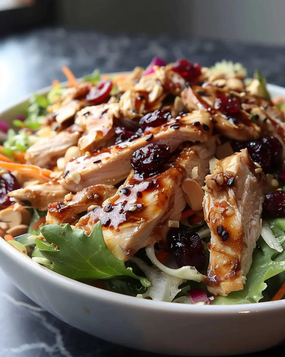 A refreshing salad combining chicken, cranberries, and Asian flavors.