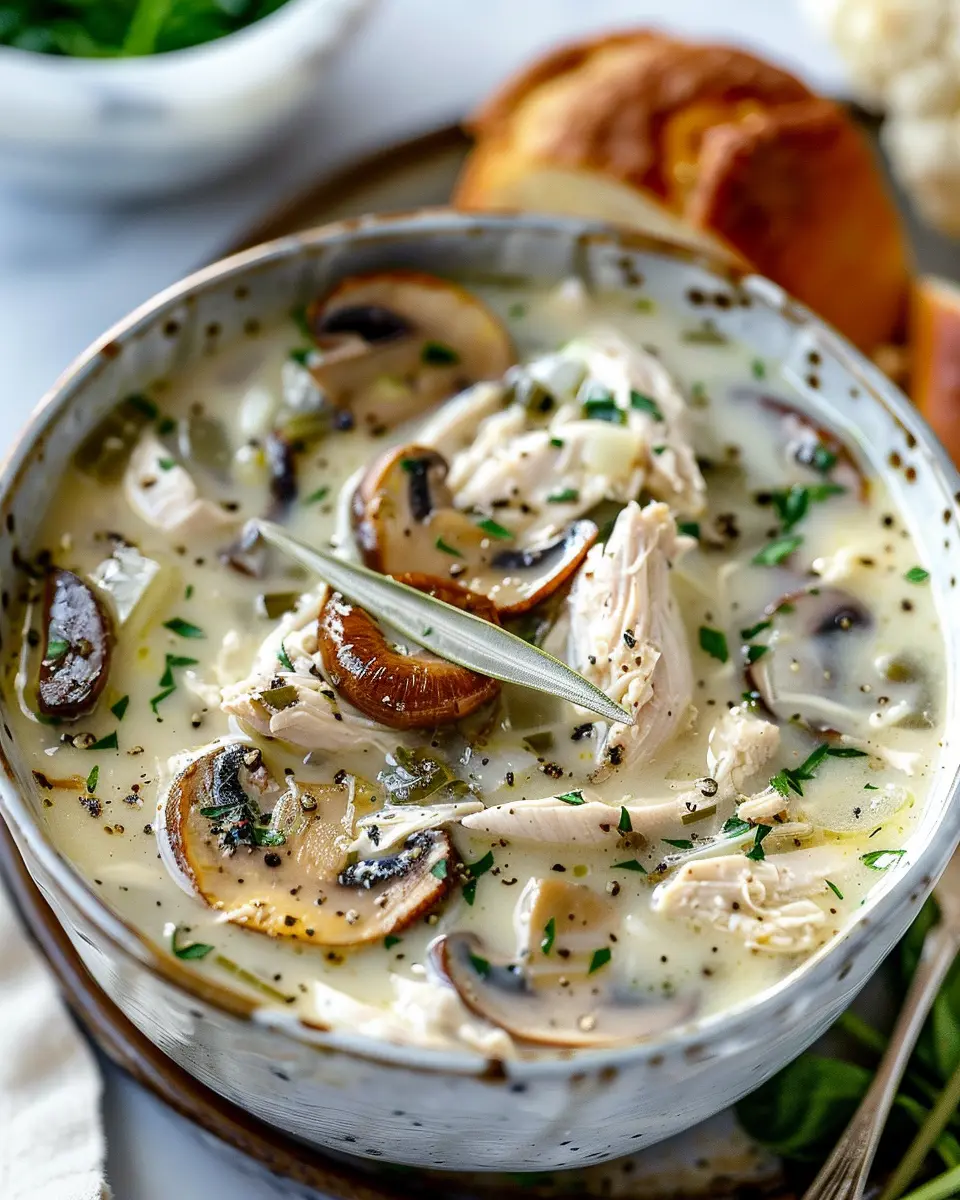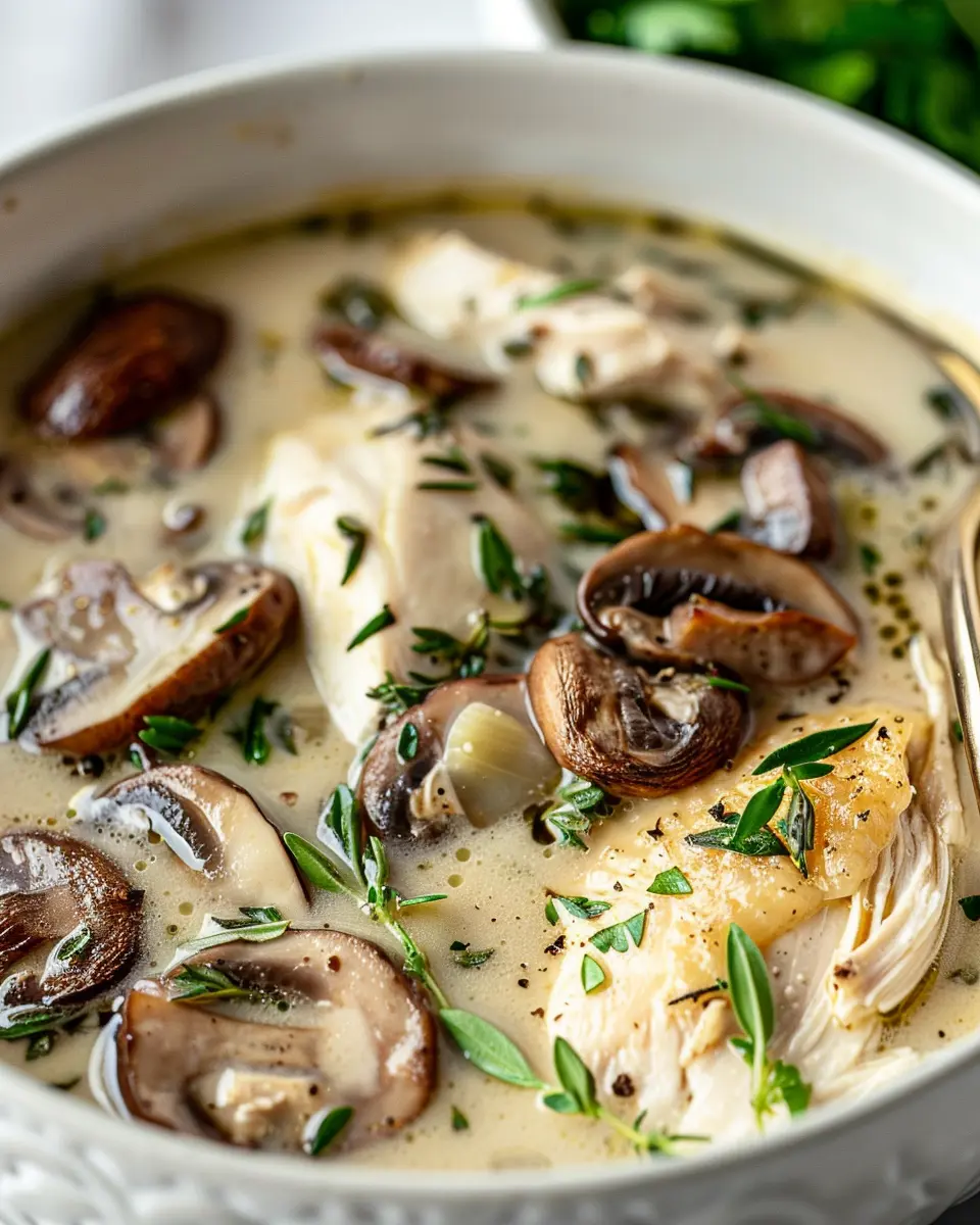 Keywords: Comforting Rotisserie Chicken and Mushroom Soup