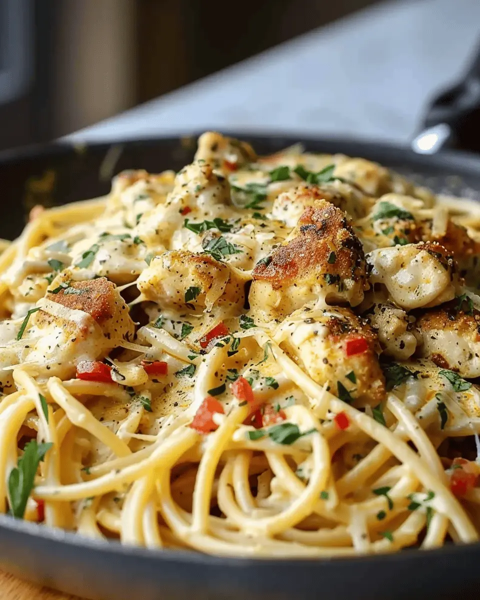 PrintCreamy Cajun Chicken Spaghetti: Indulgent Garlic Mozzarella Delight