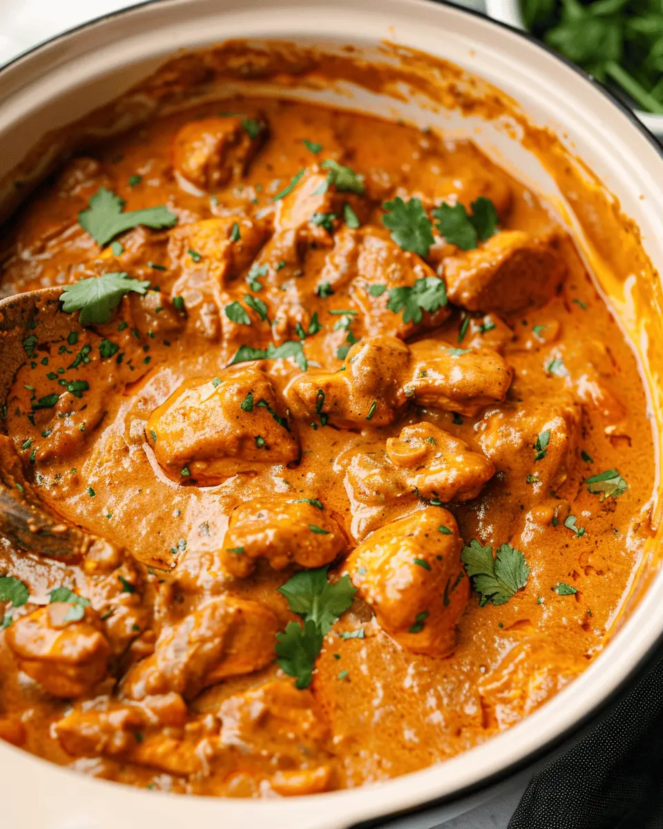 A delicious and easy recipe for homemade butter chicken made in a crockpot.