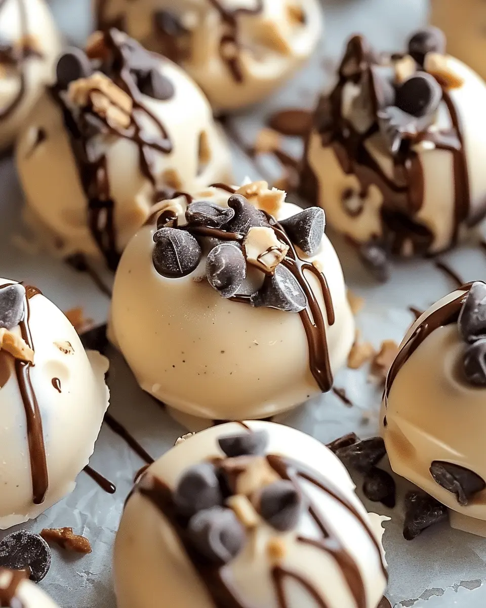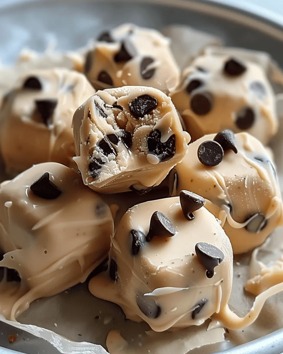 Now comes the grand finale! Here’s where you can sprinkle your optional toppings—whether it’s crushed nuts, coconut flakes, or additional mini chocolate chips—over the still-warm chocolate coating. Once you’ve decorated your bites to your heart’s content, return them to the freezer for an extra hour to set.