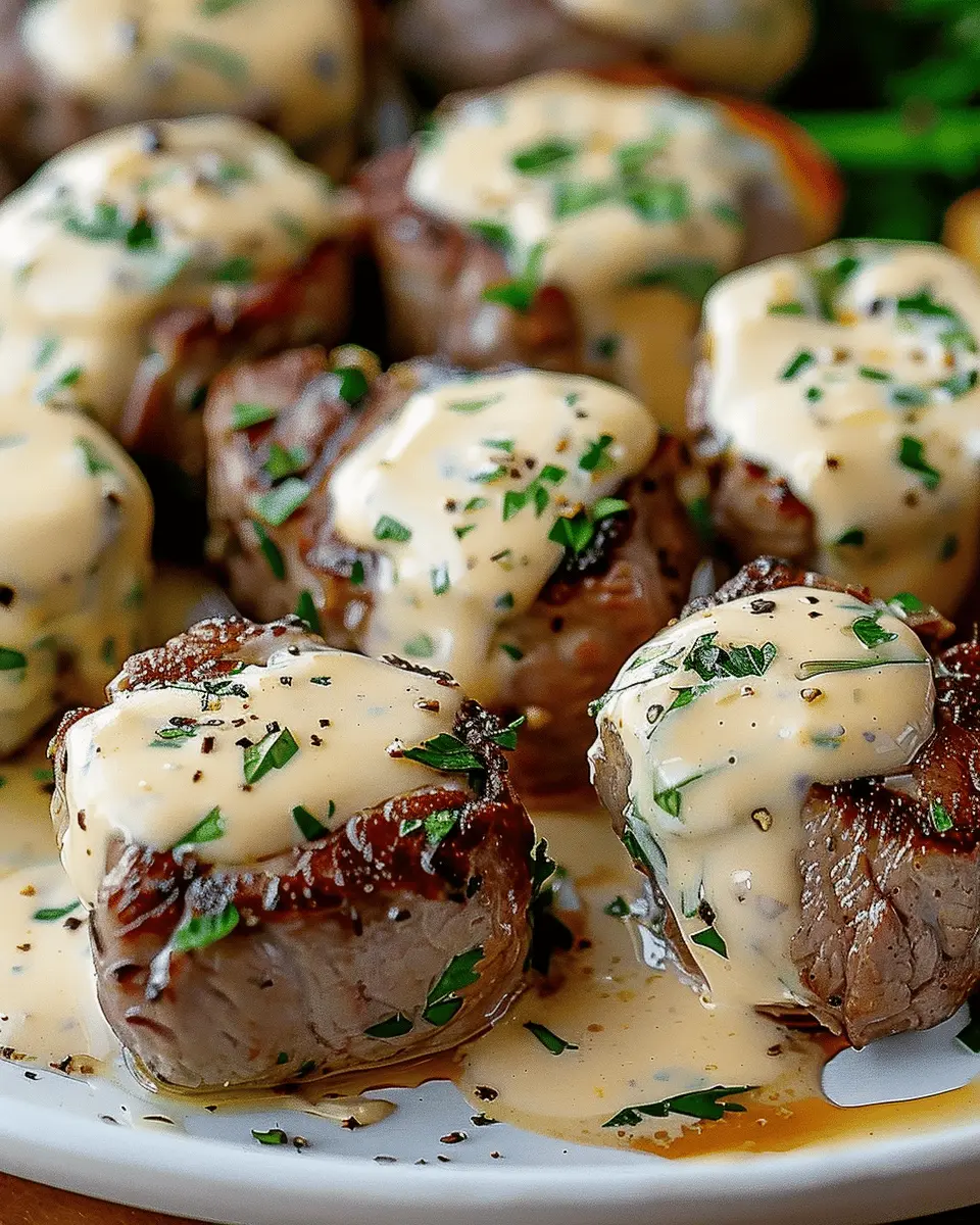 - Drizzle Sauce: Serve your steak bites with a generous drizzle of the Parmesan cream sauce over the top.