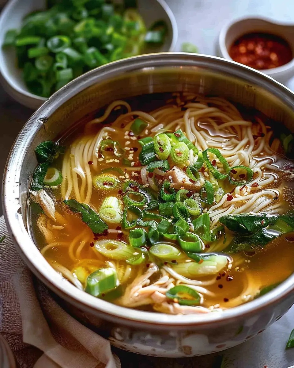 Getting the broth right is essential for a comforting bowl of ginger scallion chicken noodle soup. Aim for a balance between richness and lightness. Start by simmering your broth for at least 30 minutes to extract maximum flavor from the chicken. If it’s too thick, simply add more water or low-sodium chicken broth. For a depth of flavor, consider adding a splash of soy sauce or a hint of sesame oil, which can elevate your soup to the next level.