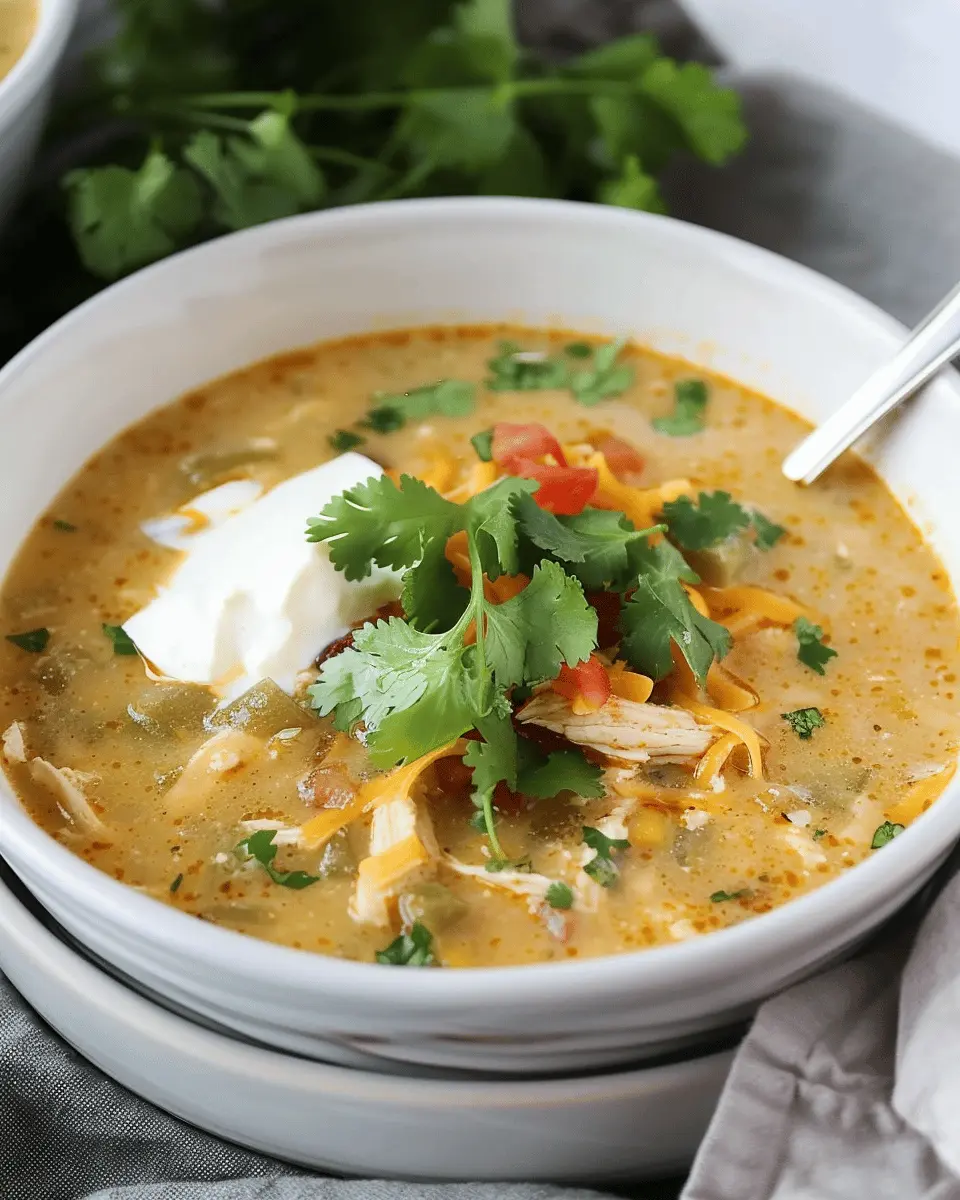 A deliciously creamy and spicy Green Chile Chicken Enchilada Soup perfect for any cozy meal.