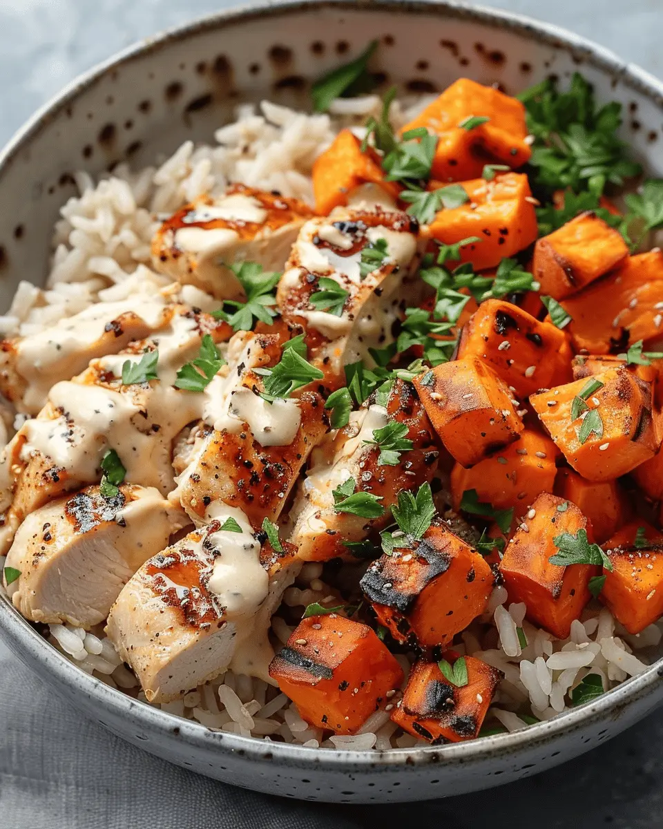 PrintHealthy Chicken Sweet Potato Rice Bowl: A Nourishing Delight for Home Cooks
