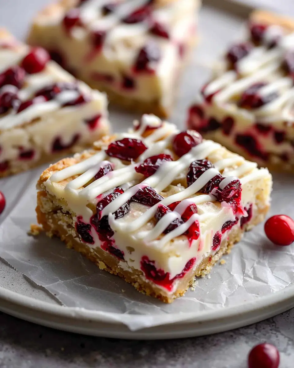 - Layered Dessert: Cut the bars into squares and layer them in a clear jar with whipped cream and additional cranberries for a gorgeous dessert parfait.