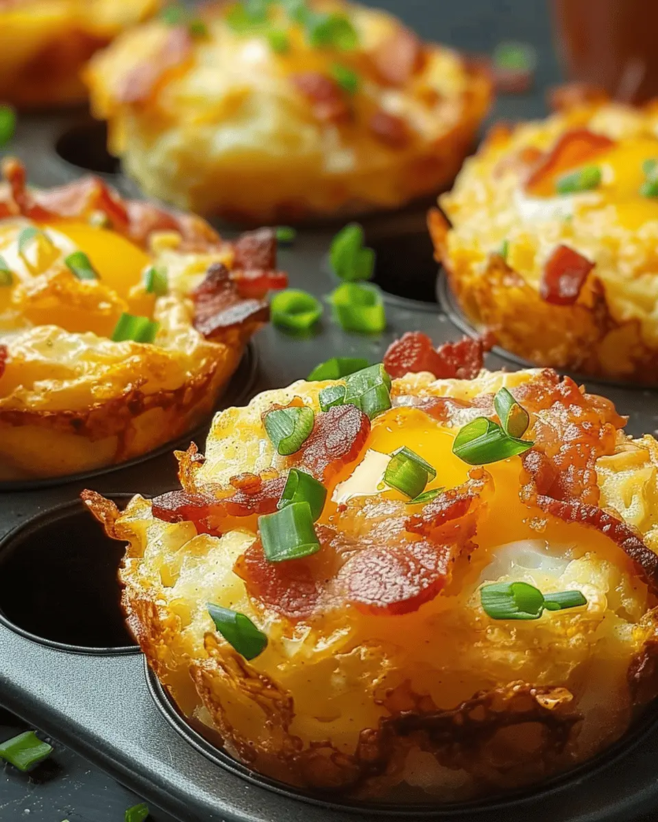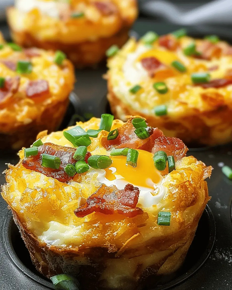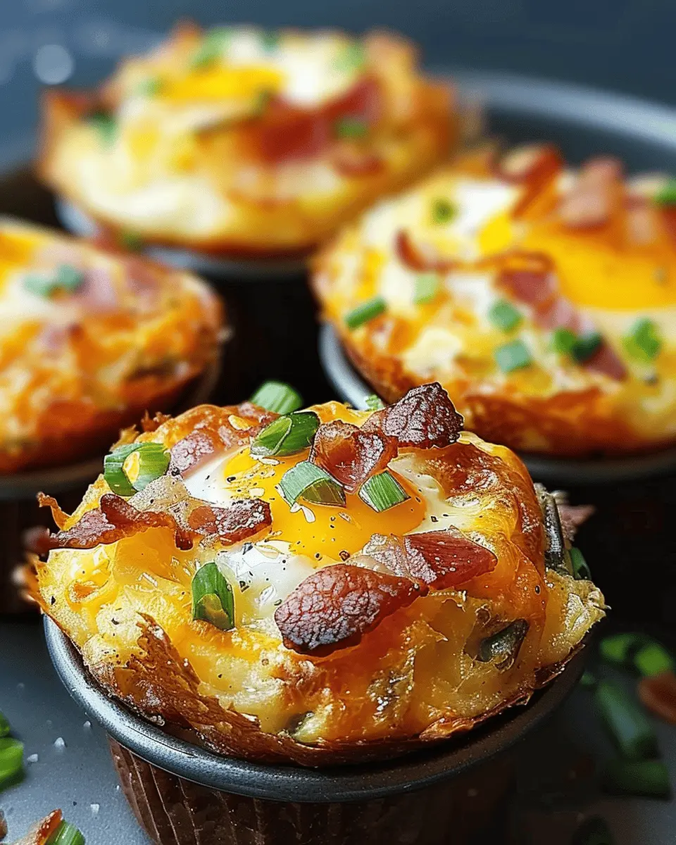 These Loaded Bacon and Egg Hash Brown Muffins are a delightful breakfast treat packed with flavor and protein, featuring turkey bacon for a healthier twist.