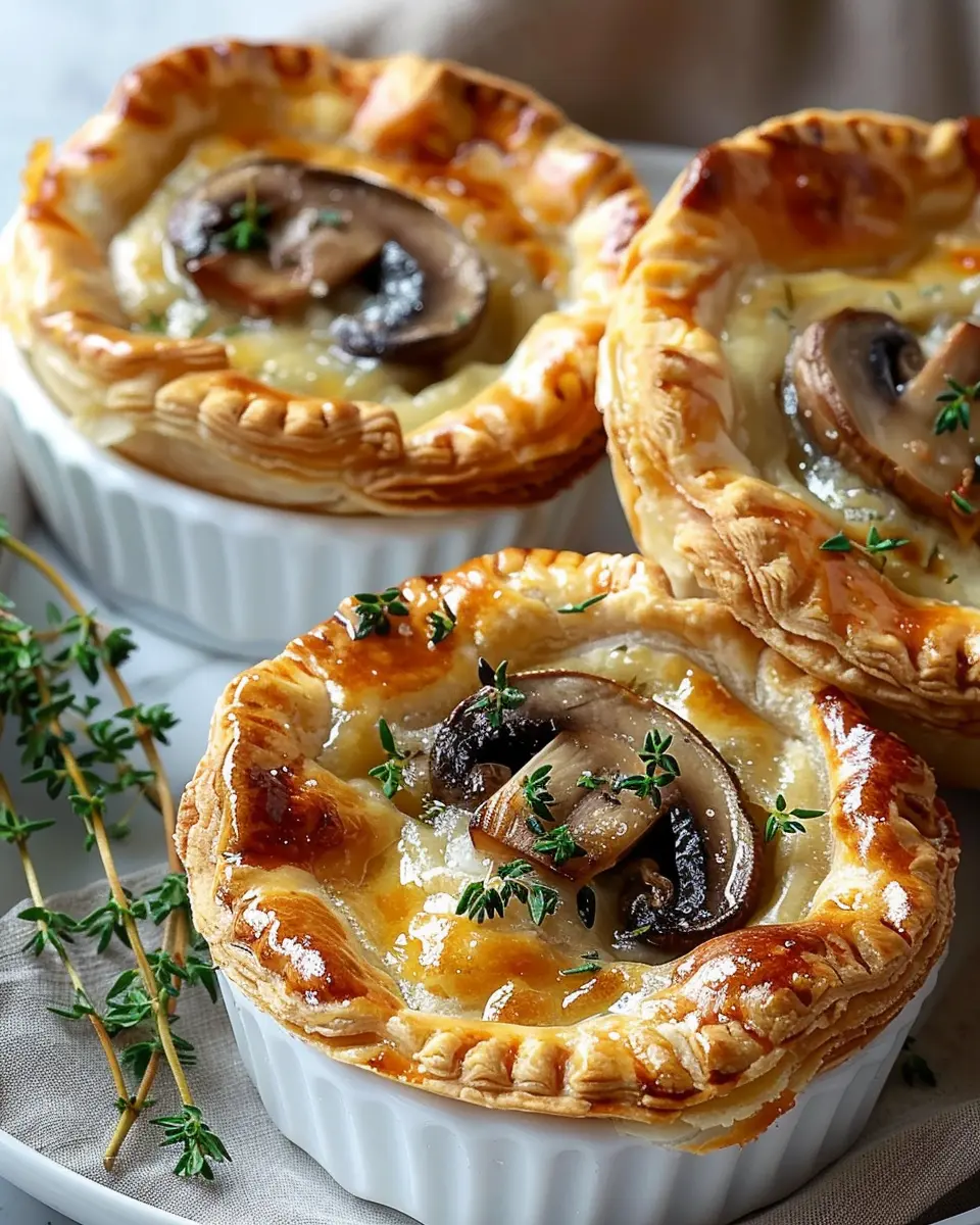 Absolutely! You can easily transform your mini mushroom pot pies into a vegan delight. Simply swap out the Gruyère cheese for a plant-based cheese alternative or nutritional yeast for added flavor. For the filling, replace any non-vegan broth with vegetable broth and use a plant-based butter instead of regular butter. You can also add protein-rich legumes, like lentils or chickpeas, to give it a hearty texture. Experimenting with spices and herbs can further enhance the flavors!