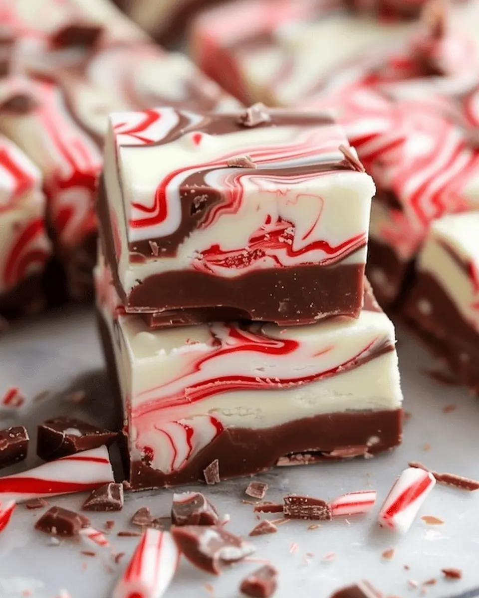 Keywords: Peppermint Swirl Fudge, Holiday Treat, Festive Desserts