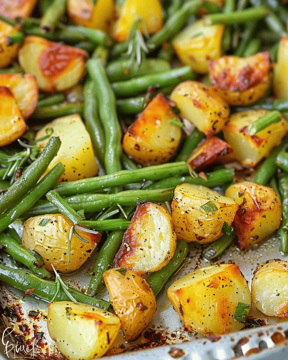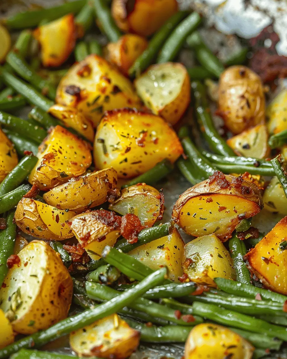 Now let’s dive into the culinary delights. The creamy texture of the potatoes contrasts beautifully with the crisp snap of fresh green beans, creating a satisfying bite every time. Imagine the warmth and comfort of perfect roasted potatoes beside bright, colorful green beans—the visual appeal is fantastic!