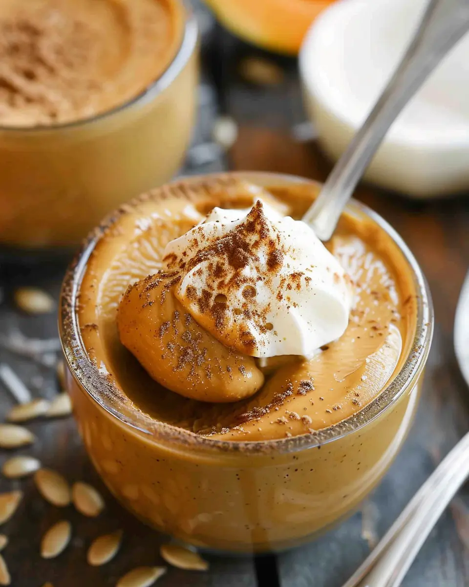 A deliciously creamy dessert that highlights the warm flavors of pumpkin, perfect for cozy evenings.