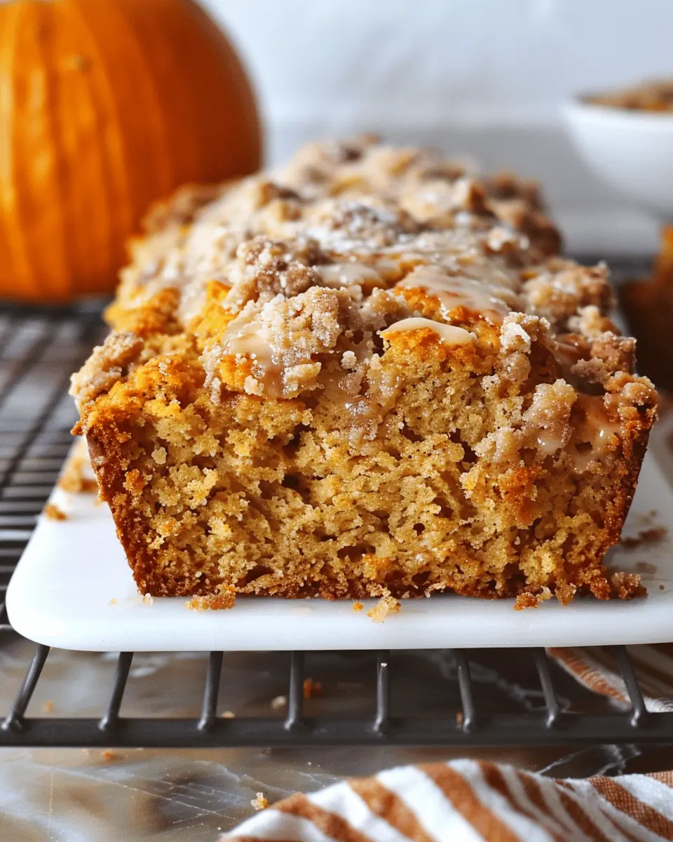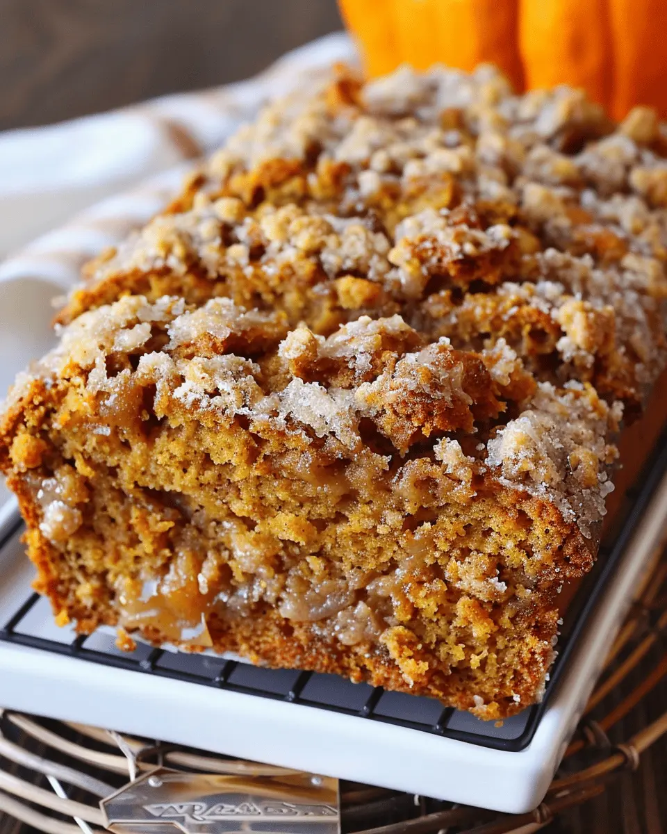 Experience the warmth of autumn with this delicious pumpkin streusel bread, perfect for cozy gatherings or a comforting treat any time of the day.