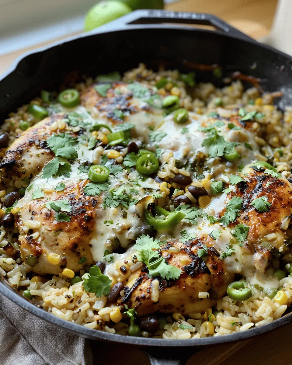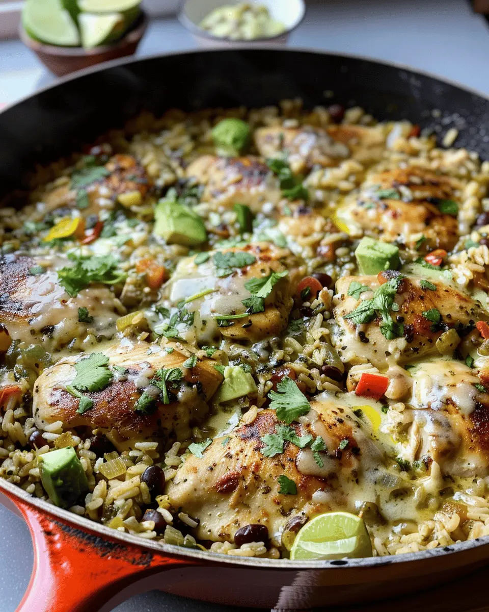 PrintSalsa Verde Chicken Rice Skillet: Easy One-Pan Delight for All
