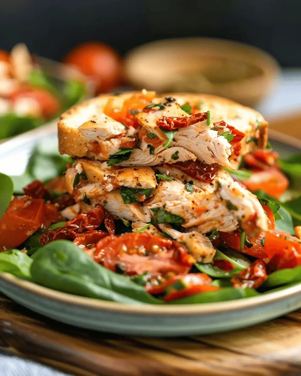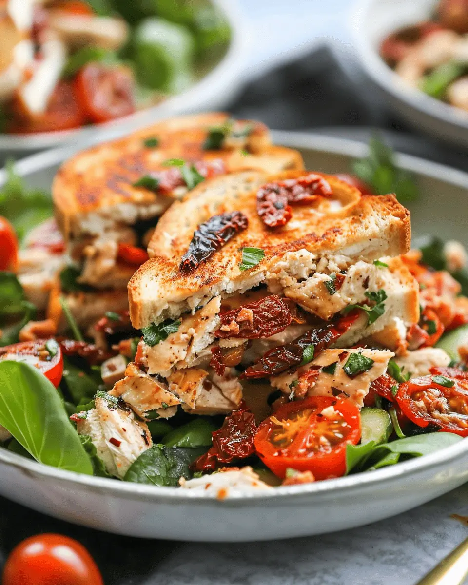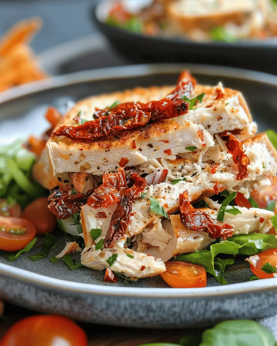 One of the simplest and most satisfying ways to enjoy your sun dried tomato chicken salad is by turning it into a sandwich or wrap. Spread a generous portion between slices of whole-grain bread or inside a tortilla. Add fresh greens like spinach or arugula for that extra crunch and nutrition. Not only does this add flavor, but it also packs in an abundance of vitamins! Try pairing your sandwich with a hearty tomato soup or a refreshing side salad; not only does that boost flavors, but it also enhances your meal’s nutrient profile.