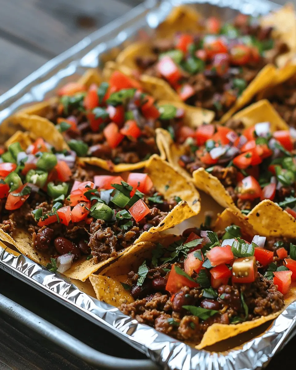 Delicious and easy-to-make tin foil packet nachos featuring turkey bacon, perfect for family gatherings.