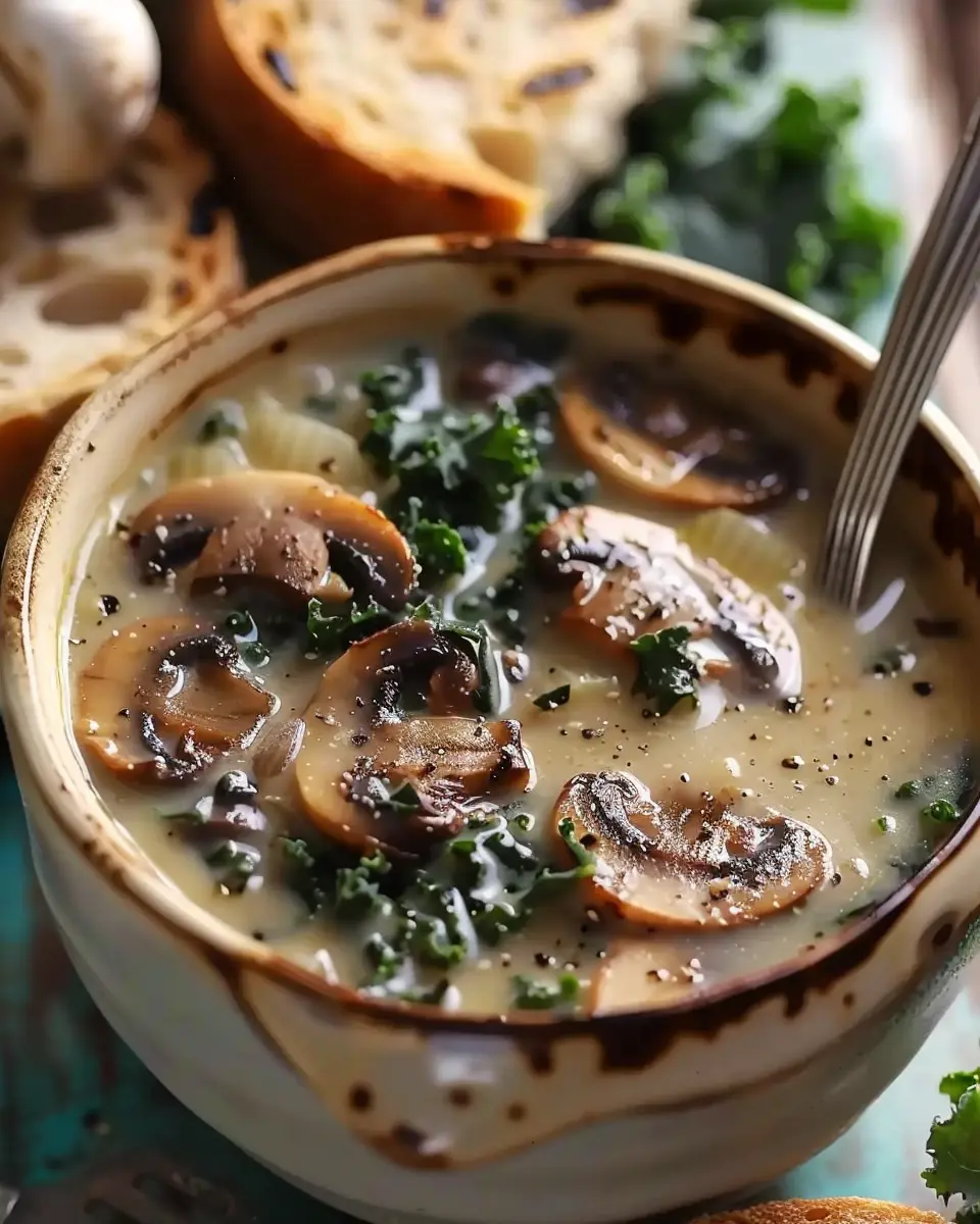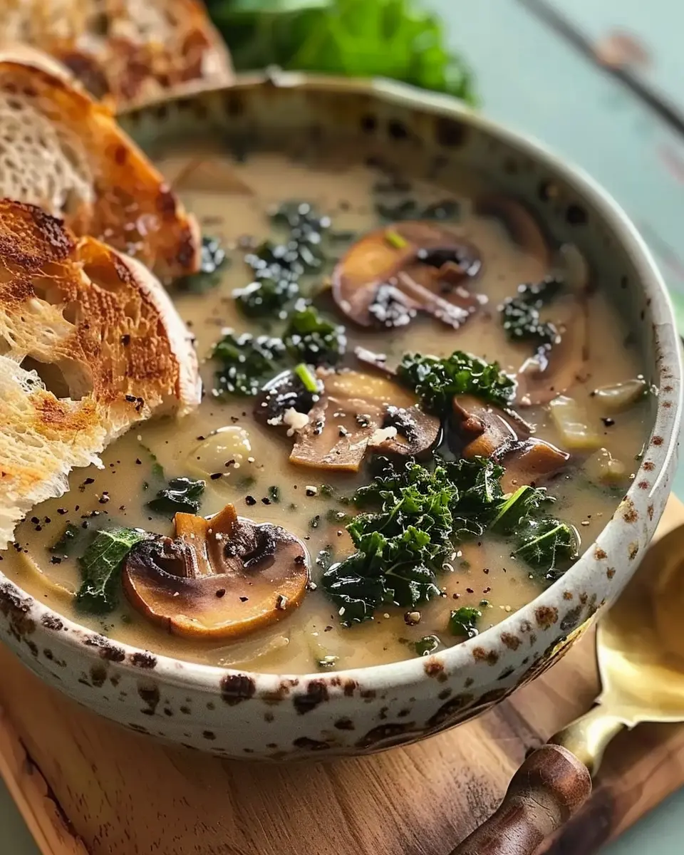 Thinking of making this soup? You might also want to check out resources on the benefits of mushrooms from Healthline or tips on kale preparation from The Spruce Eats. Happy cooking!