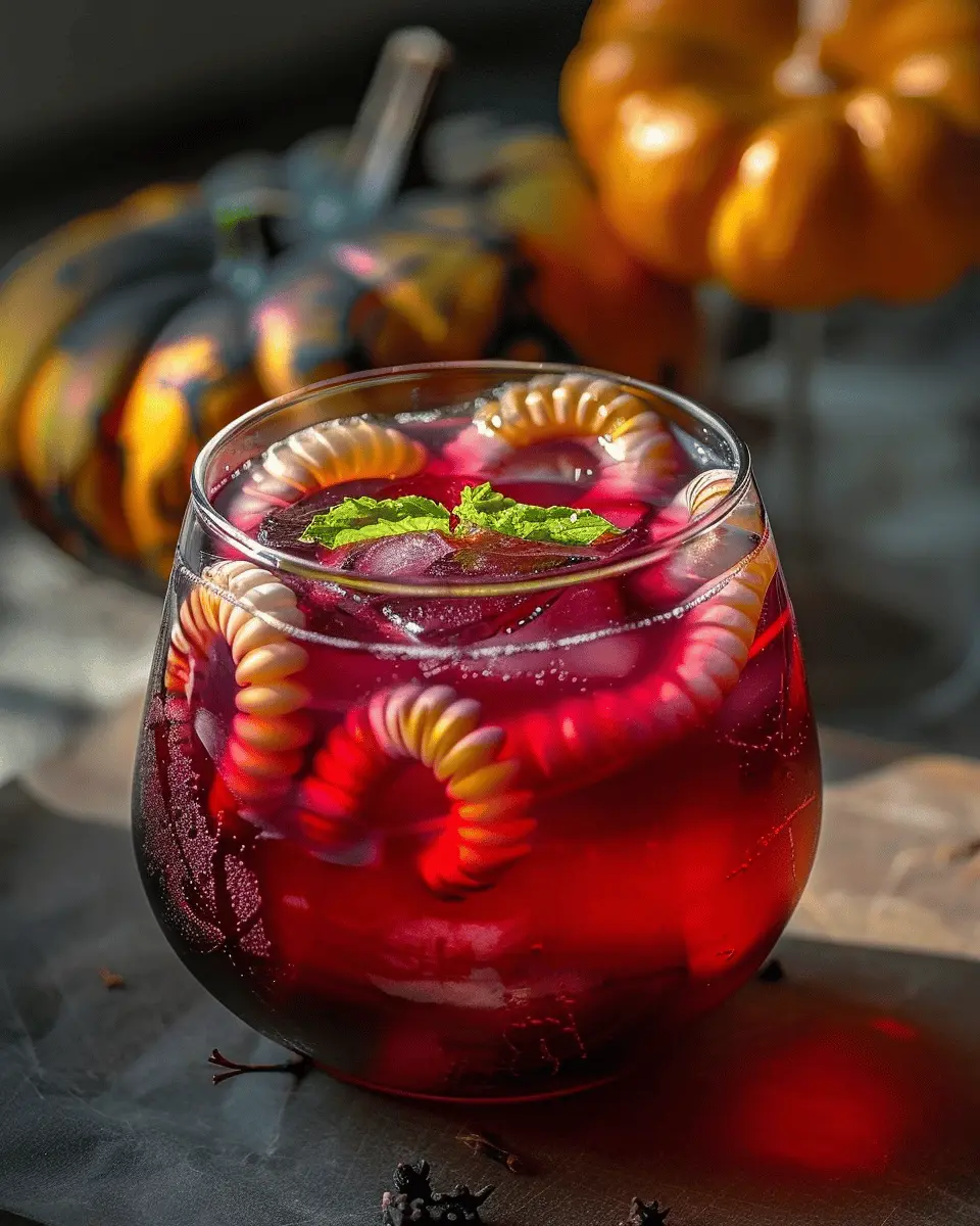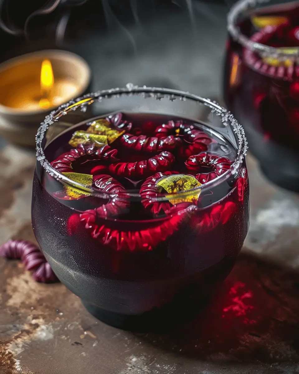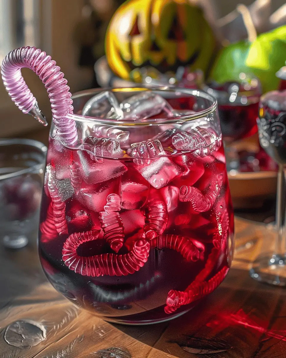 The gummy worms not only add a playful spirit but also transform your punch into an eye-catching centerpiece at your Halloween gathering.